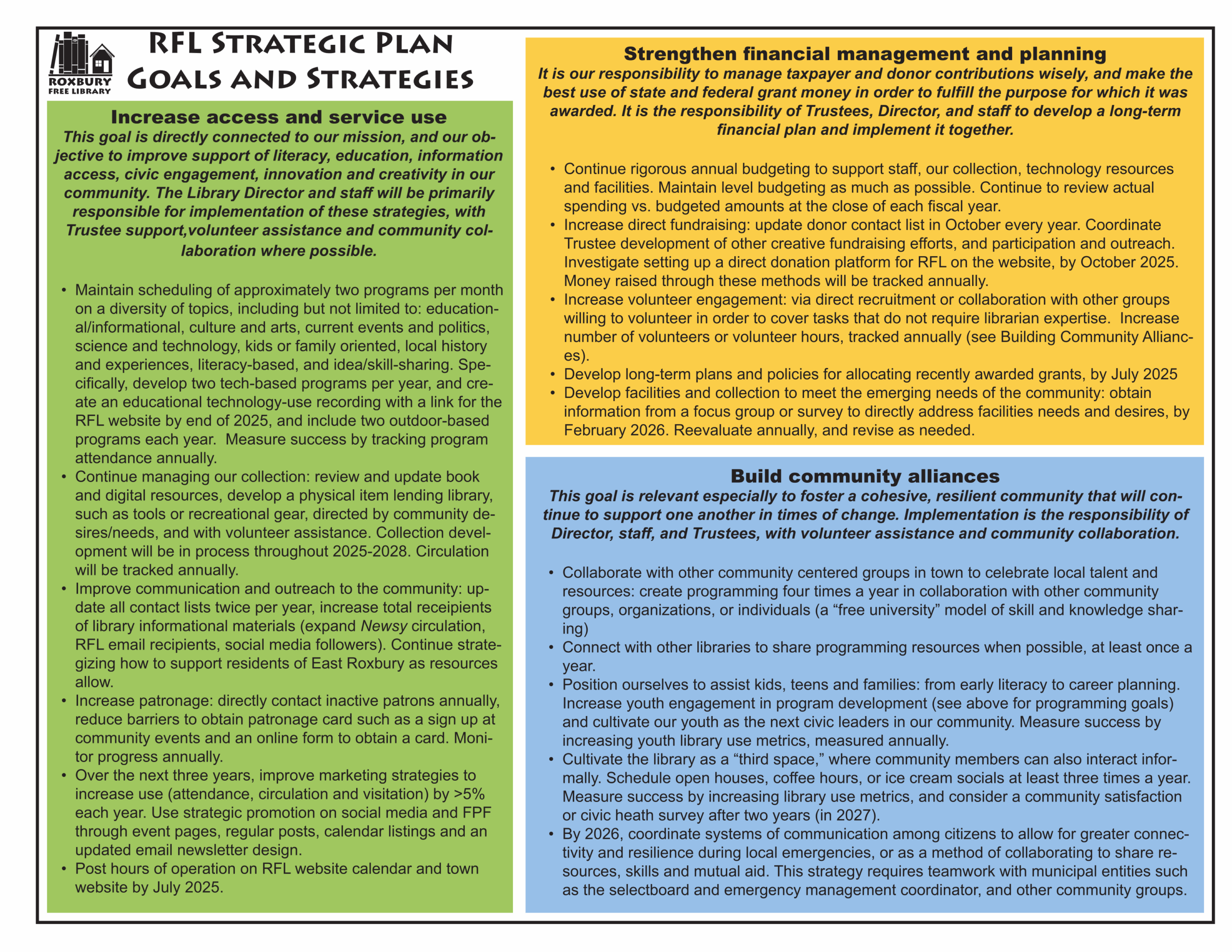 The following documents are part of the current RFL Strategic Plan (2025-2028). Please let us know if you have any questions or feedback on the plan.